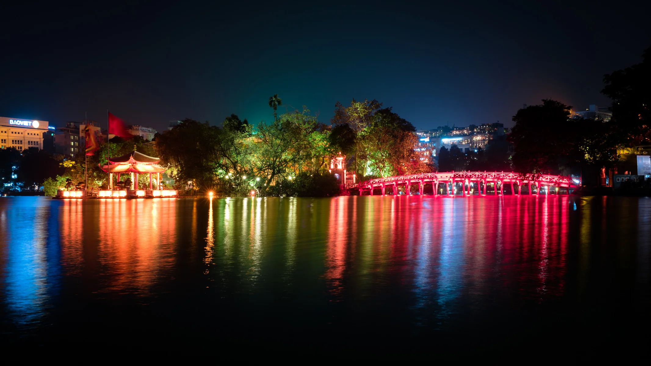 Anyhow, regardless of my slip of the tongue, after an incredible bun cha dinner, Audrey and I walked around Hoan Kiem Lake, found snacks like bánh trung, or Vietnamese rice cake with mung bean and pork, and took in the night’s festivities. All around the lake, restaurants and bars were filled with people drinking, eating, and performing various musical acts. From cover bands to group dances, everybody was having a good time.
